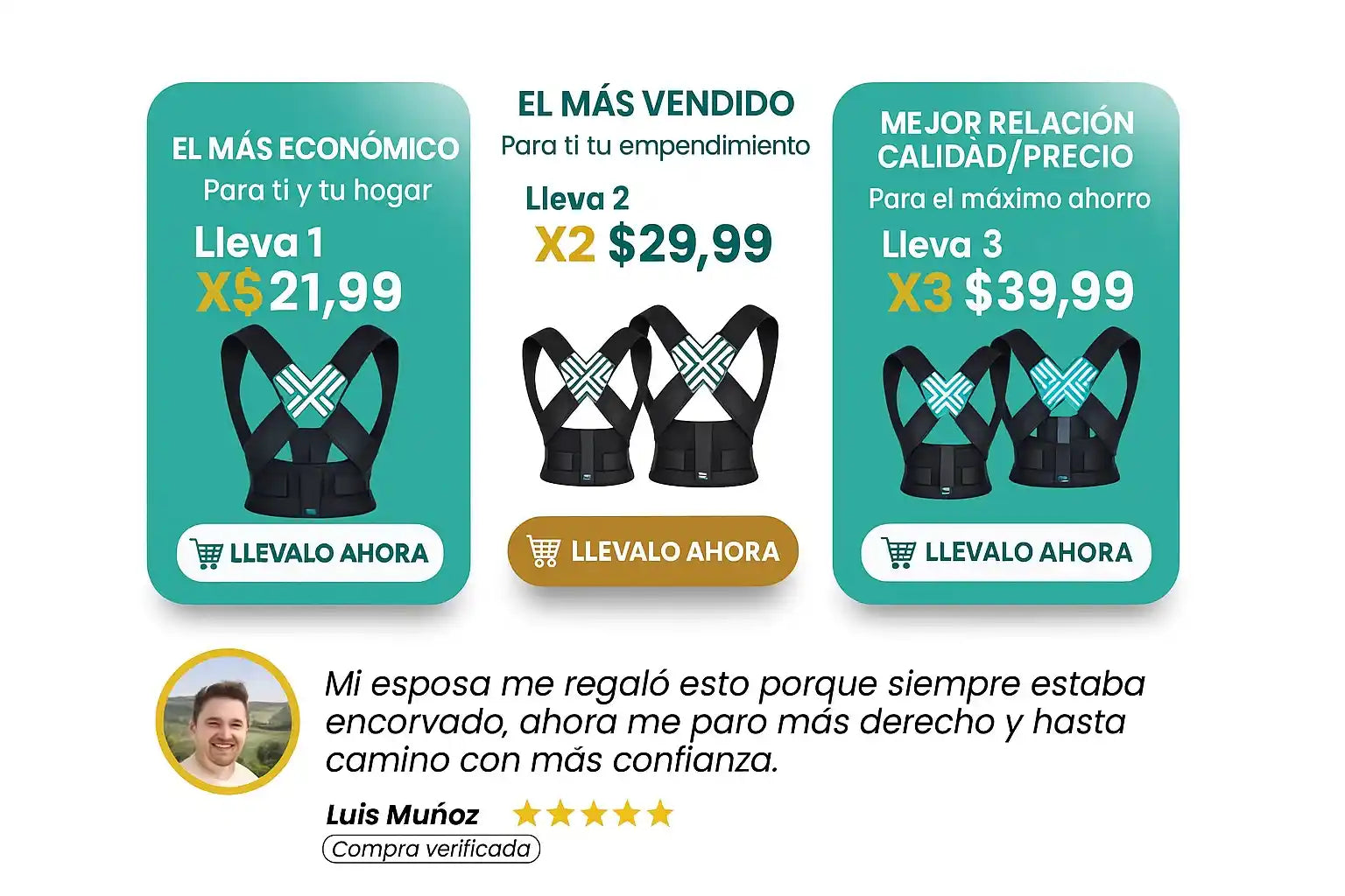 Con nuestro corrector de postura, notará una mejora inmediata en su postura desde el primer momento en que empiece a usarlo. Comenzará a erguirse más después de 7 días de uso y observará mejoras significativas y permanentes después de tres semanas.