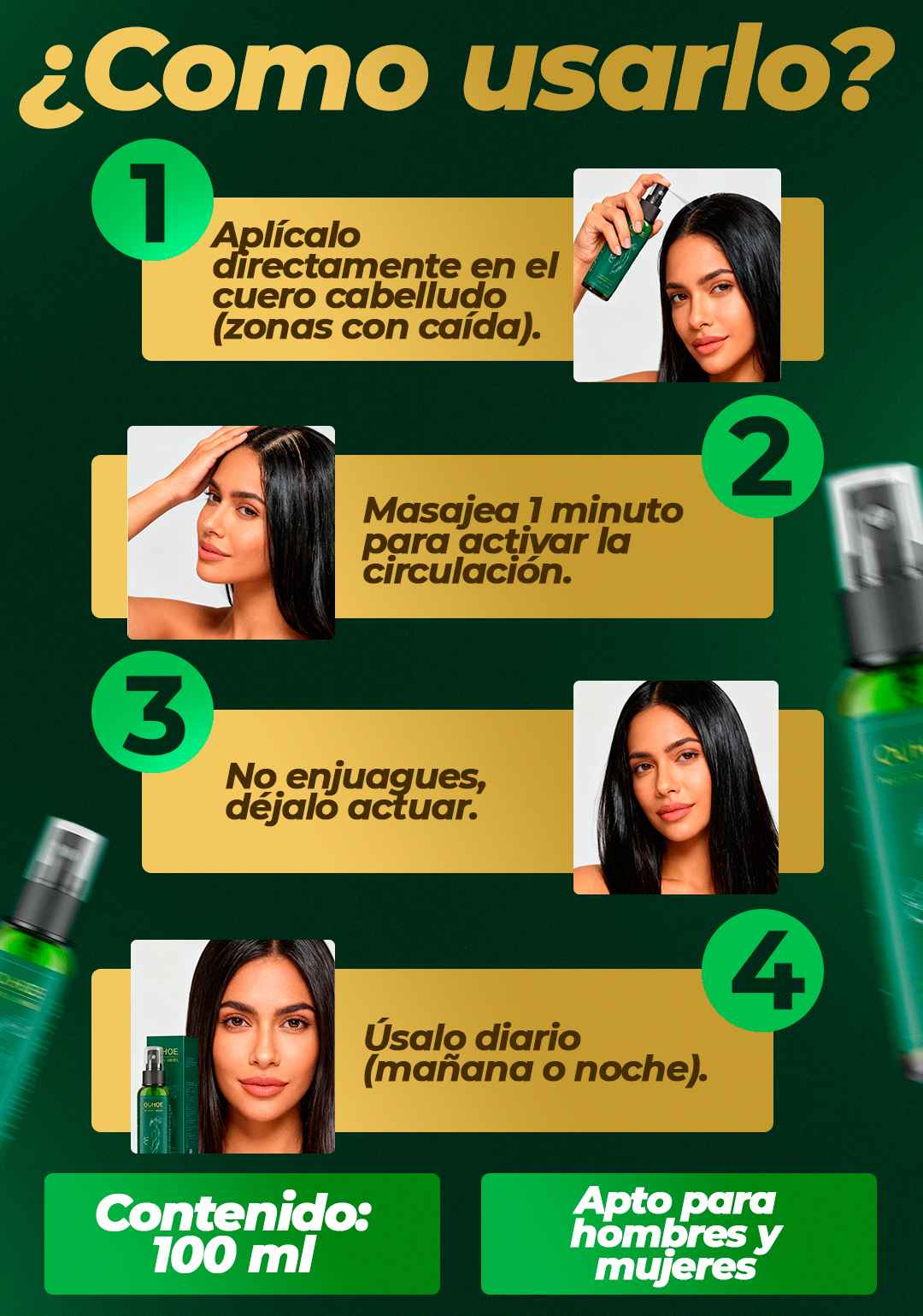 Se aplica directamente sobre el cuero cabelludo y/o la fibra capilar, se masajea suavemente y no requiere enjuague.